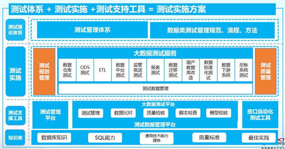 成熟的理论体系+测试实施+测试工具支撑,形成大数据测试实施解决方案
